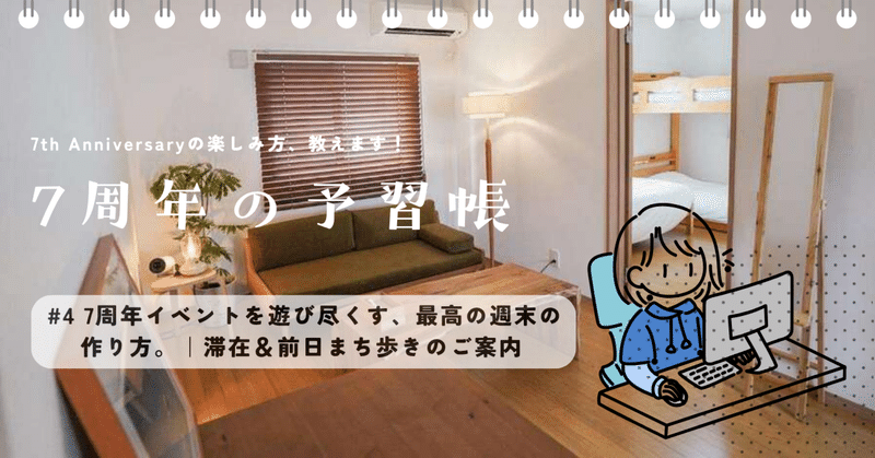 7周年イベントを遊び尽くす、最高の週末の作り方。|拠点滞在&前日まち歩きのご案内【7周年の予習帳 #4】