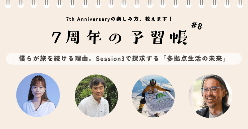 僕らが旅を続ける理由。Session3で探求する「多拠点生活の未来」【7周年の予習帳 #8】