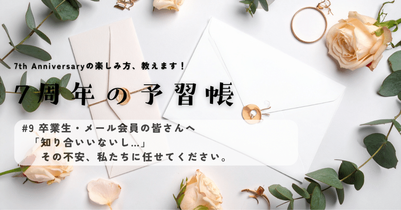 【卒業生・メール会員の皆さんへ】「知り合いいないし…」その不安、私たちに任せてください。【7周年の予習帳 #9】