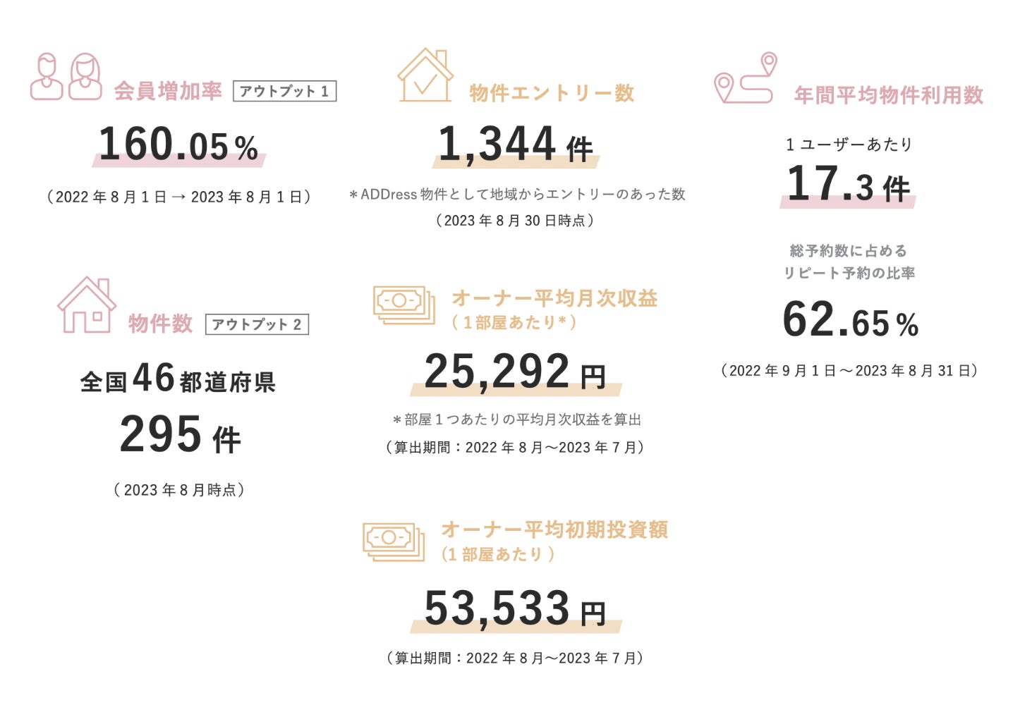 ADDressが目指すアウトカム「多拠点生活者の増加」では、昨年同月比で160.05%と約1.5倍以上の増加率でした。