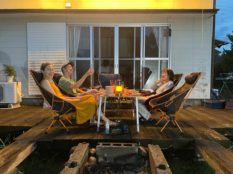 1階には囲炉裏やダイニング、テントサウナ、BBQスペースなどがあり、まちづくり会社で働くメンバーや都農町の人々、全国から集うまちづくりのPJTに関わる人々が集い、ローカル、まちづくりなどをテーマに夜な夜な議論が交わされています。またホステルの横には5反の畑があり、そこに集う方々と一緒に育てていきたいと考えています。